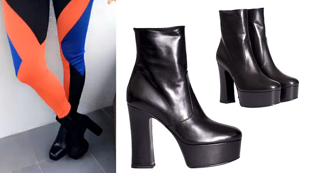 Por último, os puedo contar que el calzado que lleva en esta ocasión es, de nuevo, de Yves Saint Laurent (thanks, LMG). El modelo es el 'Candy 80' en color negro brillante. En la página oficial de YSL puedes comprarlo por 995 dólares. Son unos botines con casi cinco pulgadas de tacón ancho y más de una pulgada de plataforma.
