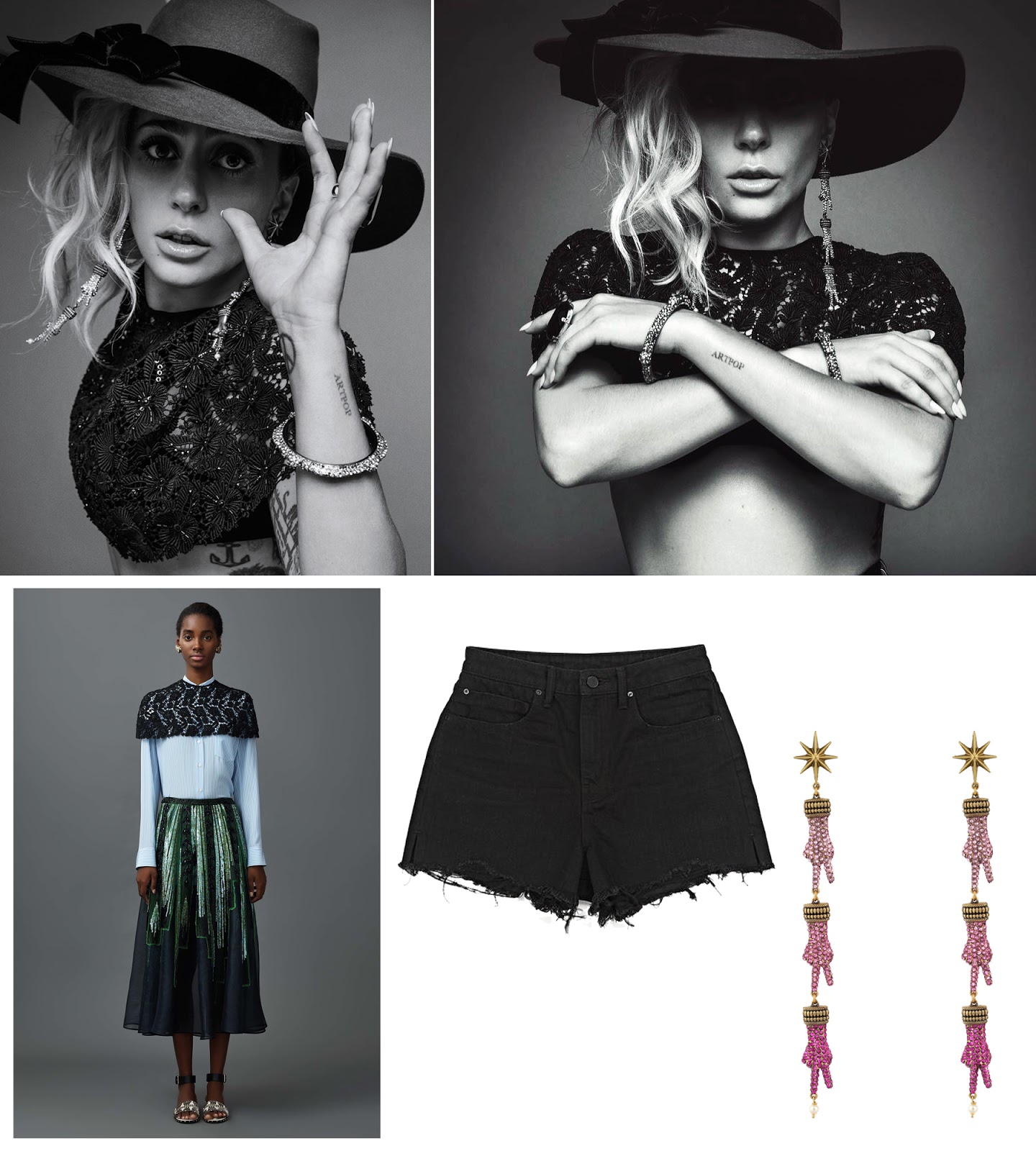 En la imagen que ha servido como portada de la revista, vemos como la cantante neoyorquina viste una camiseta blanca, sobre la que lleva una preciosa falda blanca, parte de la colección 'Resort 2017' de Chanel. Esta falda de tulle con diferentes capas está cubierto por cortes en forma de hoja. Su choker metálico, datado en 1880, es de Stephen Russell, las joyas de Inez & Vinoodth y el sombrero de Gladys Tamez, el modelo 'Carly' en color negro.