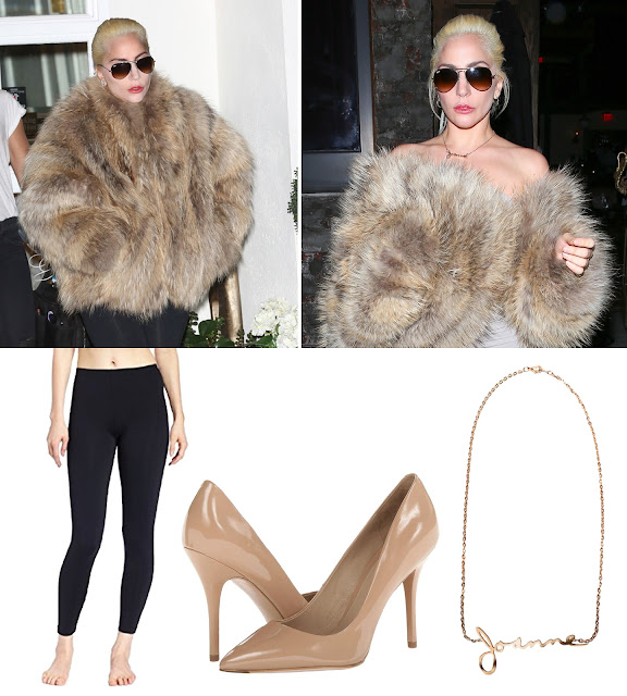 El miércoles, pudimos ver a Lady Gaga salir del centro de belleza 'Epione', luciendo un outfit más casual. Su outfit ese día consistió en unos leggings negros de Capezio, unos tacones en color rosa de Brian Atwood y un par de gafas de sol en color marrón de Ray Ban. Más tarde, pudimos ver como cambió sus leggings con un vestido en color gris, y añadió el collar de Joanne, que está a la venta en su página web.