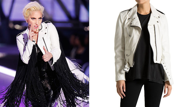Para la tercera canción, un pequelo cambió en el outfit. Mother Monster optó por añadir a su outfit la clásica chaqueta de piel de Schott, la 'Perfecto' en color blanco. Customizada para la ocasión, esta chaqueta cuenta con flecos negros extra, además de diferentes brillantes y un par de alas blancas, convirtiéndose la misma Gaga en un ángel de Victoria.
