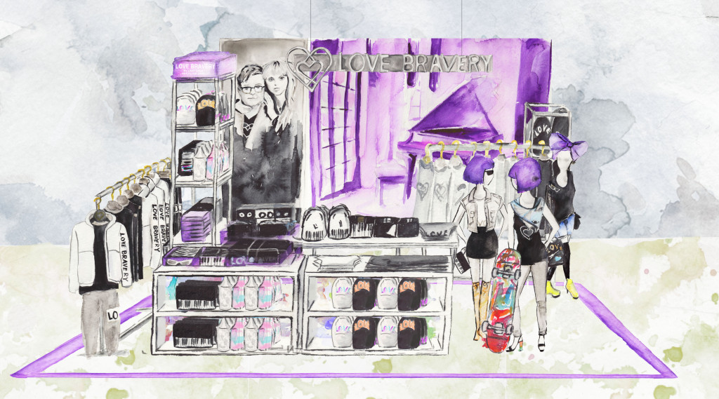 "Es un honor colaborar con el señor Elton John para crear esta colección con Macy’s", dice Gaga. "Necesitamos hacer del mundo un lugar más agradable y valiente, donde los hombres y las mujeres de cualquier lugar sean capaces de vivir con compasión. Eso es de lo que trata la Fundación Born This Way, eso es de lo que trata la Fundación contra el SIDA de Elton John y sobre eso será 'Love Bravery'."