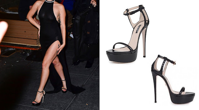 En cuanto a los zapatos de tacón, se tratan de las sandalias con plataforma 'Trophy' de Ruthie Davis, hechas en piel negra y correa en la parte superior, con el interior en color blanco.