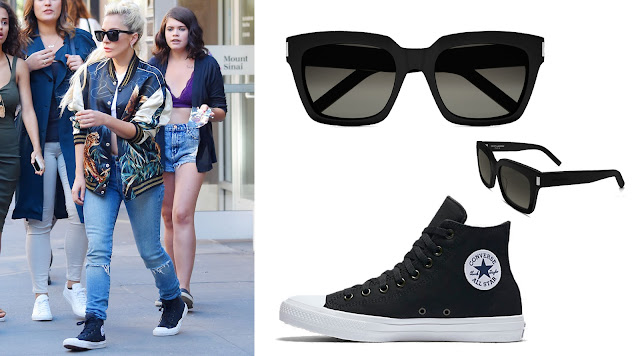 Por otro lado, Lady Gaga viste las mismas gafas de sol de YSL que lució ayer (el modelo 'Bold 1' de lentes en color gris y pasta negra) junto a unas zapatillas deportivas que tampoco son nuevas en su armario. Se tratan de las 'Chuck II High Top' de Converse, en color negro.
