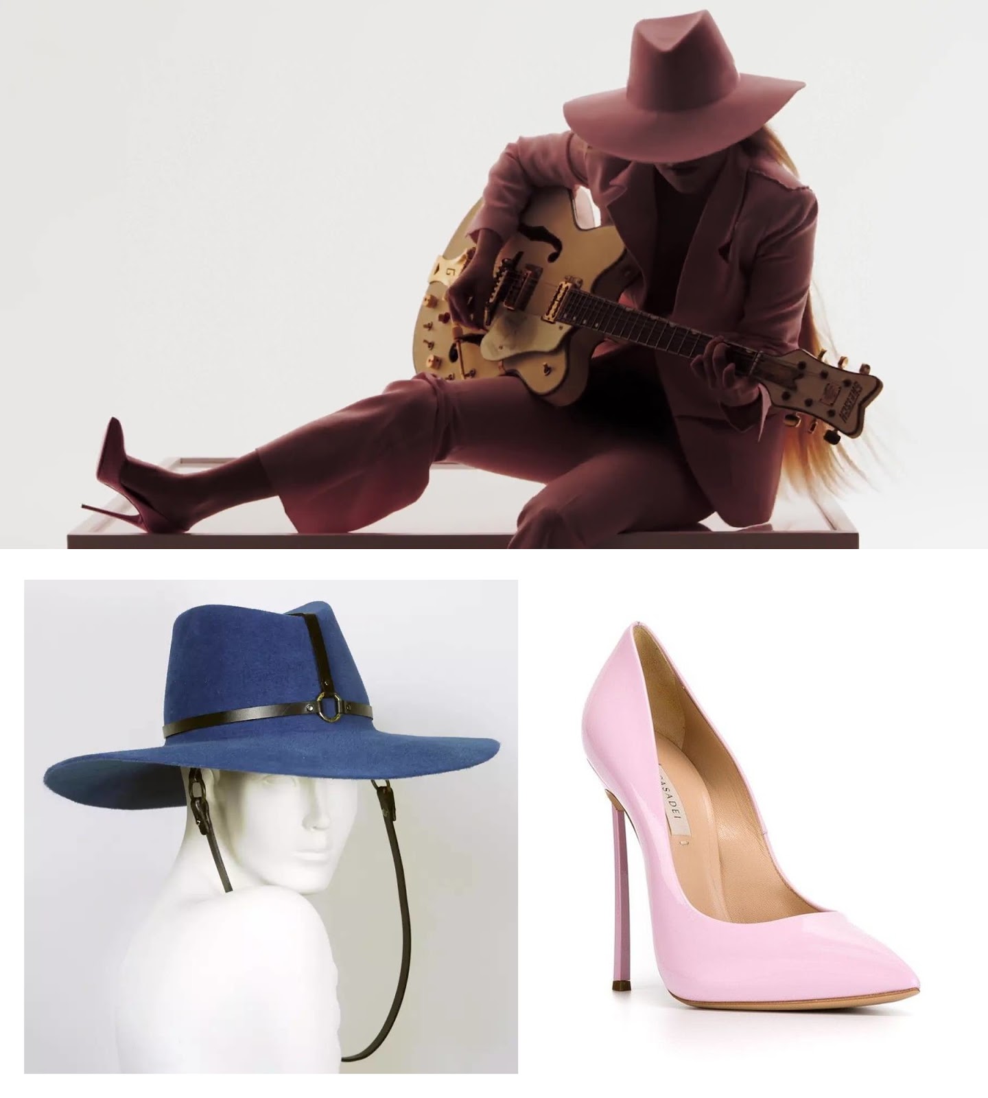 Los complementos, simplemente ideales. Gaga decide vestir una versión customizada del sombrero Vagabond de Harvy Santos en color rosa, junto a un par de los tacones Blade de Casadei, también en piel rosa.