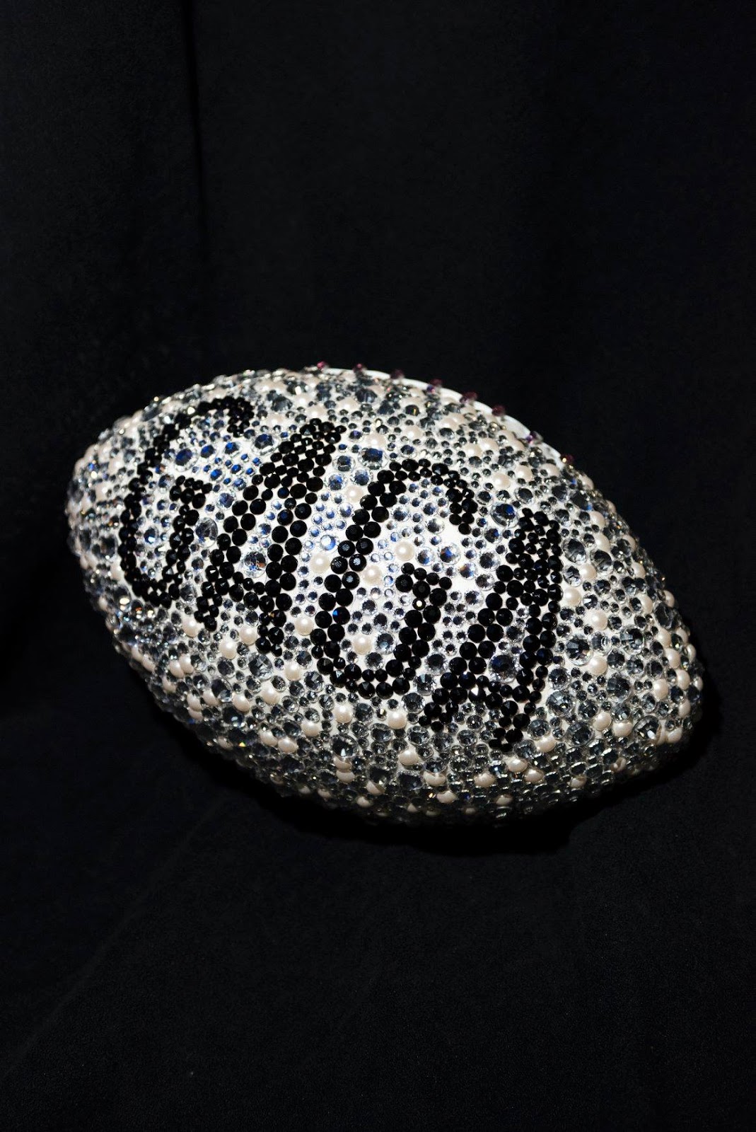 BONUS: La pelota de fútbol americano que Gaga cogió al terminar su actuación y saltar del escenario es una pelota customizada en diamantes de imitación en color plateado y negro.