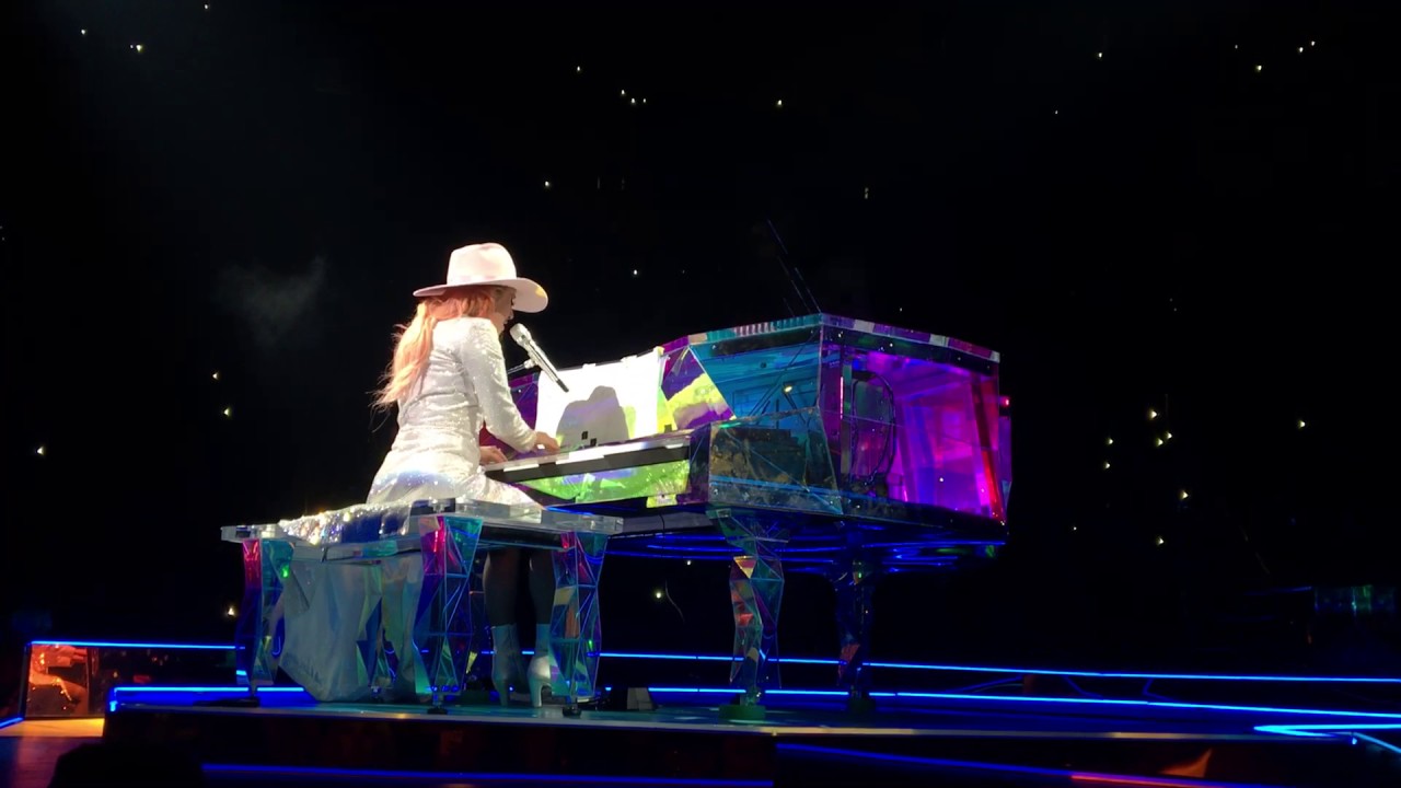 Y finalmente, Gaga se va con lo que comenzó todo: su piano. Pero antes, nos deja su sombrero rosa, esta vez (al contrario que al principio del show) sin diamantes ni nada superficial. Nos deja su sombrero limpio y humilde. Nos deja su corazón sincero, como señal de que volverá. No obstante, mostrando en las pantallas la imagen del sombrero pero rodeado de diamantes.